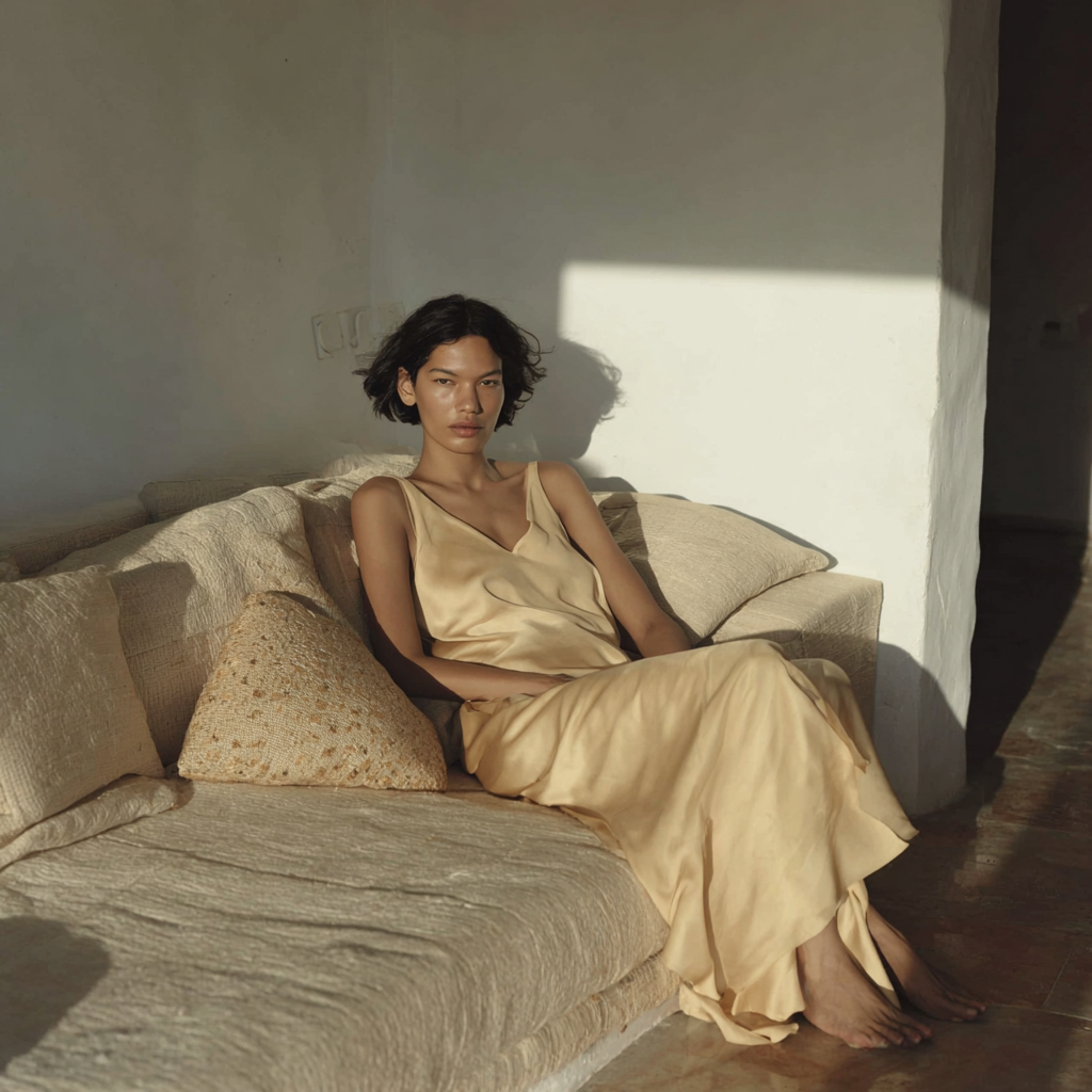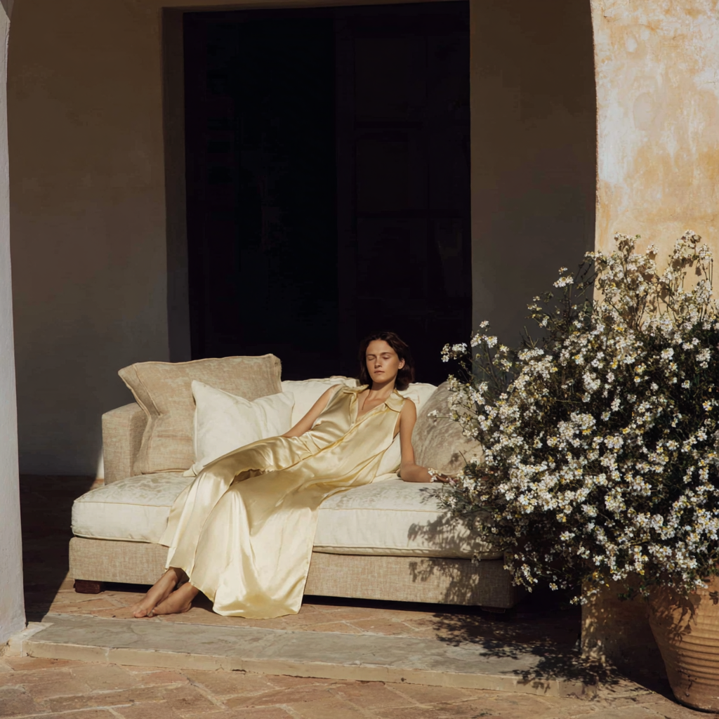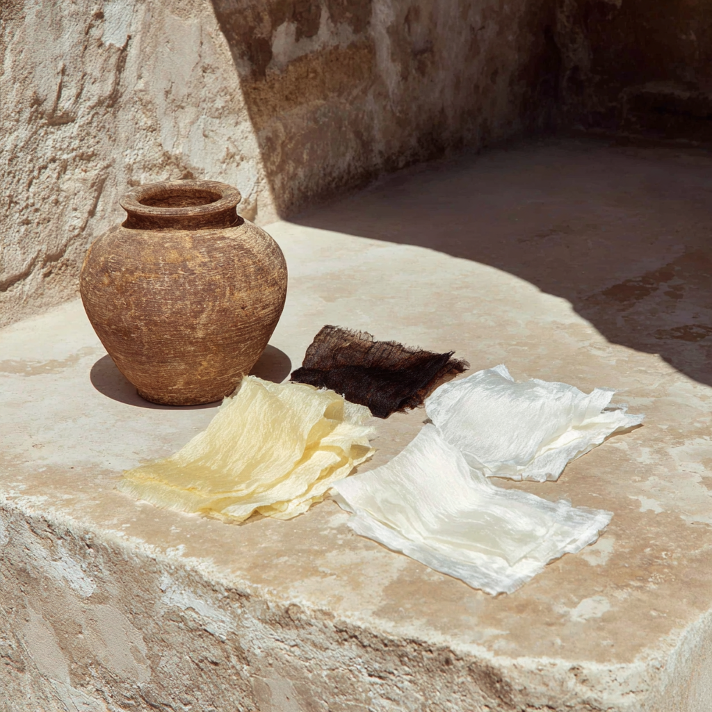 We choose fabrics that breathe, soften, and evolve with time. Every fiber begins with nature, silk, cotton, linen, materials that respect the body and the earth.